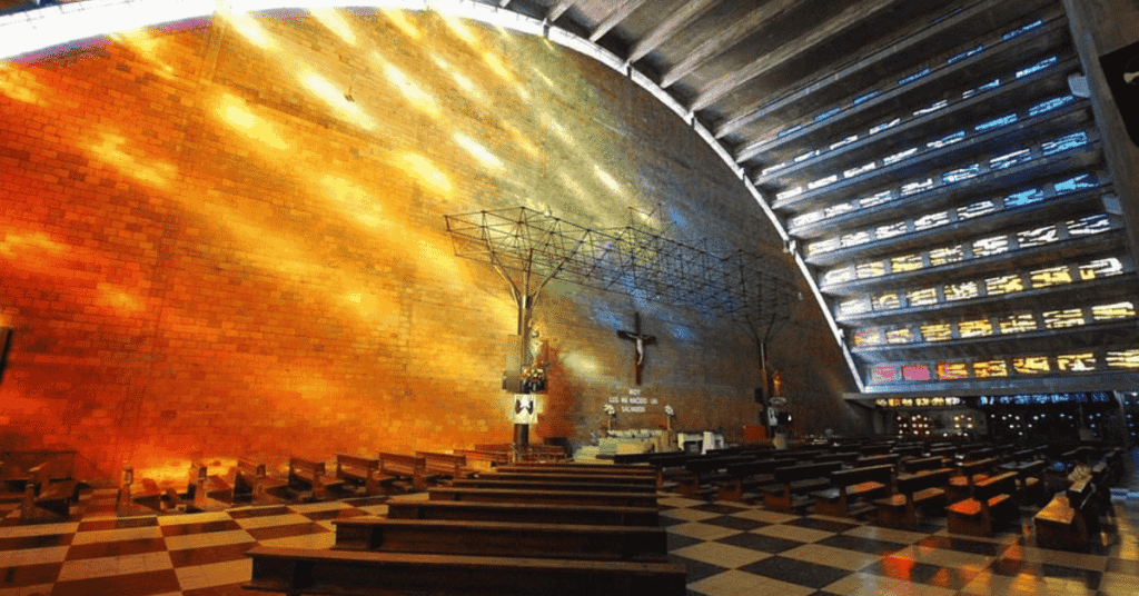 I visited around 2:00 PM, which I think is the best time. The afternoon sun hits the glass, and the entire gray concrete interior is washed in rainbows. Deep blues, fiery reds, and bright yellows streak across the floor and the altar. It didn’t feel like a stuffy ancient cathedral; it felt modern and spiritual in a way I hadn’t experienced before. It is easily one of the most photogenic El Salvador attractions.